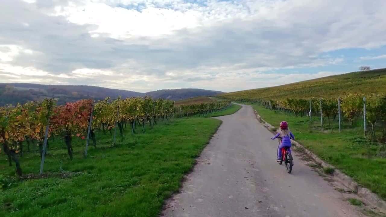 Ausfahrt in die Weinberge: Testerin Greta meistert mit dem Woom Explore auch stärkere Steigungen.