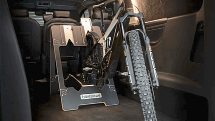 Egal ob in der (Heck-)Garage, im Van oder in der Werkstatt: Als frei stehender Radständer ist der Bikestow Original universell einsetzbar. Um bis zu vier Fahrräder abzustellen, setzen die Engländer auf eine ebenso simple wie effektive Technik. Das Rad liegt an drei Punkten auf und wird über ein V-förmiges, in der Breite variables "Fallbeil" fixiert, das unterschiedliche Reifen- und Radtypen sicher aufnimmt. Gefertigt ist der Ständer aus behandelten Siebdruckplatten, die einen wertigen Eindruck machen und in verschiedenen Farben erhältlich sind. Der Familienbetrieb fertigt per Hand im englischen Stourbridge. Für den Transport oder die platzsparende Lagerung lässt sich der Bikestand zusammenklappen, ein Magnetmechanismus hält ihn dabei zuverlässig in Form.