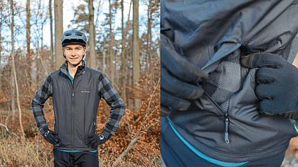 Die Allgäuer von Vaude gelten als Vorreiter in Sachen Nachhaltigkeit: Ihr Polyestergarn basiert auf recycelten Plastikflaschen. Die Minaki II ist eine Fleecejacke mit winddichtem Torso-Bereich. Auf Trail und Tour wärmt sie bei niedrigen Wintertemperaturen, trägt sich aber auch bei frühlingshaften Bedingungen angenehm, ohne dass man ins Schwitzen gerät. Geschnitten ist sie eher eng, der Stoff liegt angenehm wärmend auf der Haut. Die Reißverschlüsse lassen sich dank kleiner Seil Anhänger auch mit kalten Fingern oder Handschuhen problemlos bedienen. Bei Regen oder schlammigen Trail-Bedingungen empfiehlt sich die nicht wasserdichte Vaude vor allem als wärmende Schicht unter einer Regenjacke.