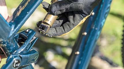 Die Geometrie der fünf Rahmengrößen zeichnen die US-Amerikaner trendig bis lang, der Reach misst in Größe Medium 466 mm. Über einen Flip-Chip im Dämpferyoke lässt sich der Sitz- und Lenkwinkel um 0,3 Grad und die Tretlagerhöhe um 5 mm anpassen, wir wählten das flachere Setup.