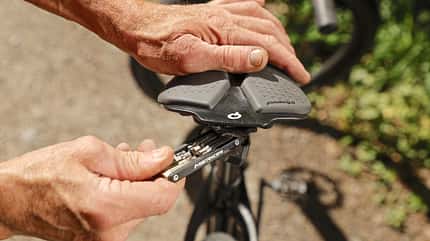 Unter dem Sattel wartet ein cleveres Minitool auf den Einsatz.
