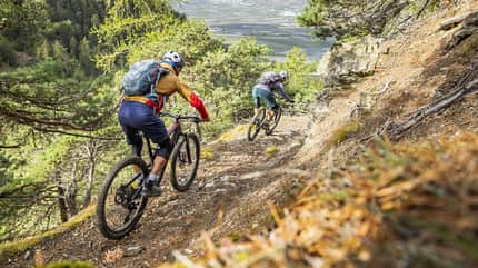 Zwischen Naturns, Latsch und Prad treffen Panorama-Trails mit Felsen und Spitzkehren auf Trails über Nadelgedecken Waldboden. Eine Kombination aus kurzen, steilen Uphills bis hin zu Abfahrten über 700 Tiefenmeter.