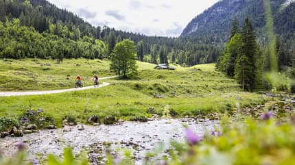 Genussradeln: Flowig geht es mit Blick auf Watzmann und Hochkalter zum Hintersee.