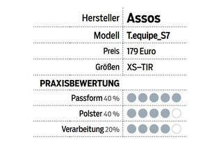 Das überzeugendste Gesamtpaket aus Passform, Schnitt und Material im Testfeld bieten die T.equipe_S7 von Assos und die Orhi Bibshort von Etxeondo. Deutlich schwächer präsentieren sich hingegen die Modelle von Scott, Bontrager von Gore. Bei einem Testmodell von Gore hielten überdies die Nähte am Rücken der Zugbelastung beim Ausziehen nicht stand und lösten sich frühzeitig.