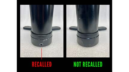 Die betroffenen Standpumpen wurden zwischen 2016 und 2021 hergestellt und sind an einer Entlüftungsöffnung an der Vorderseite der Basis zu erkennen. Wenn sich an der Vorderseite der Basis keine Entlüftungsöffnung befindet, handelt es sich um ein neueres Modell, das von dieser Rückrufaktion nicht betroffen ist.